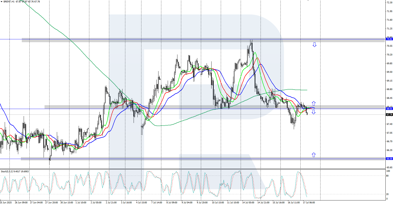 Brent quotes remain under pressure, trading slightly below 68.00 amid concerns about a global economic slowdown. Discover more in our analysis for 17 July 2025.