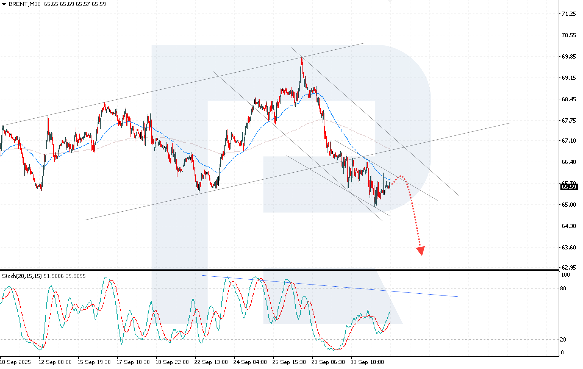 Brent quotes remain under pressure from fundamental factors despite an attempt to recover after a three-day decline. The rate currently stands at 65.59 USD. Discover more in our analysis for 2 October 2025.