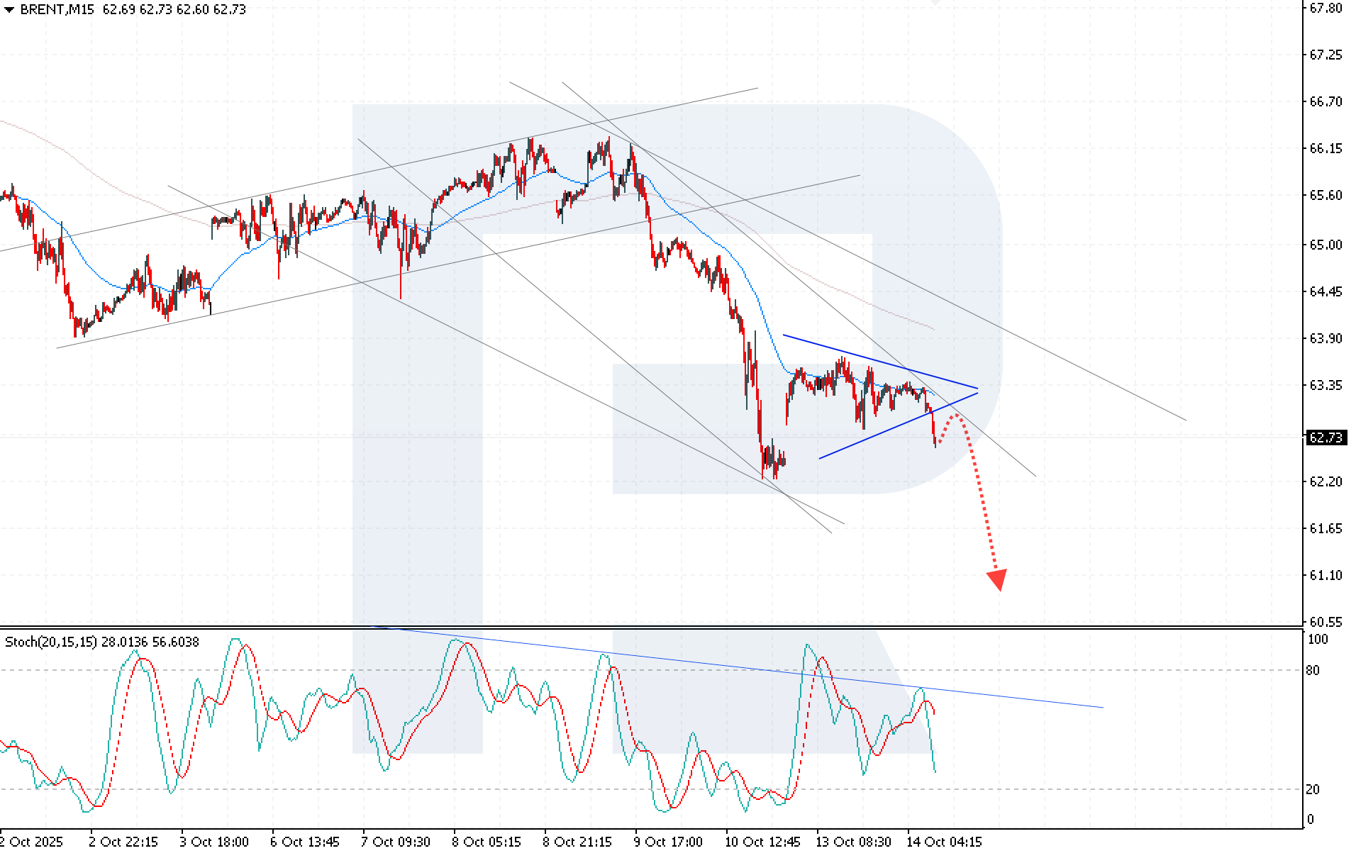 Brent crude prices are falling, remaining under pressure due to rising output among OPEC+ countries. Quotes currently stand at 62.73 USD. Discover more in our analysis for 14 October 2025.