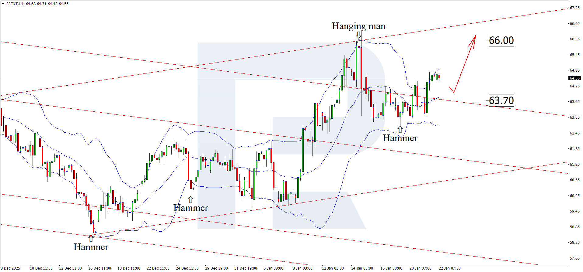 The Brent price forecast for 22 January 2026 suggests the 66.00 USD level as an upside target. A breakout above resistance would open the door for stronger upward momentum.