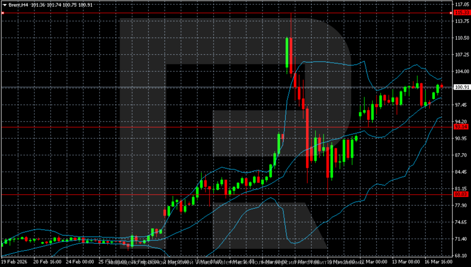 Brent may consolidate before the next move. The Brent forecast for today, 17 March 2026, suggests a return towards the 104.00–107.00 area.