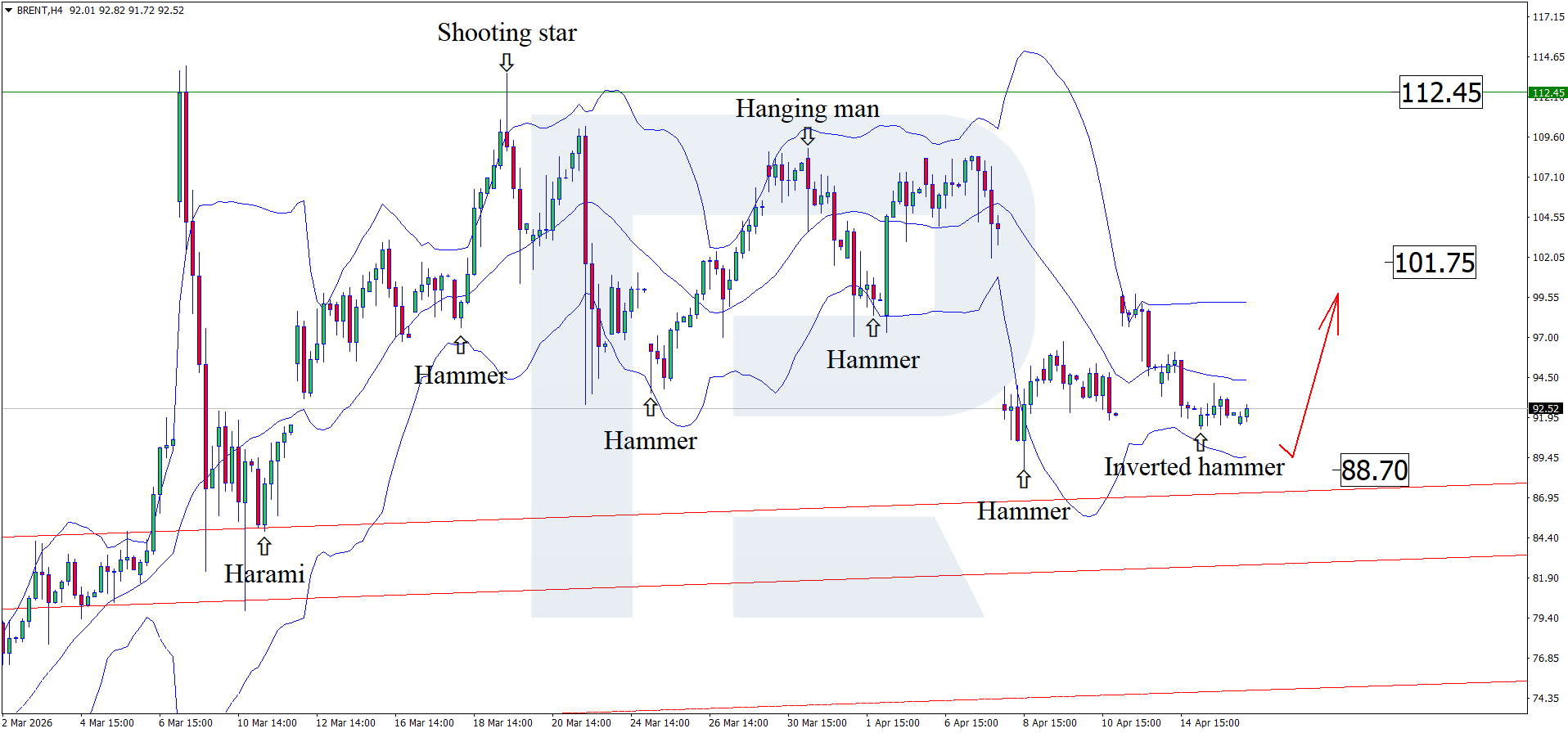 At the same time, an alternative Brent price forecast for 16 April 2026 should not be excluded, under which Brent quotes may continue the downward wave and test the 88.70 support level before further growth.