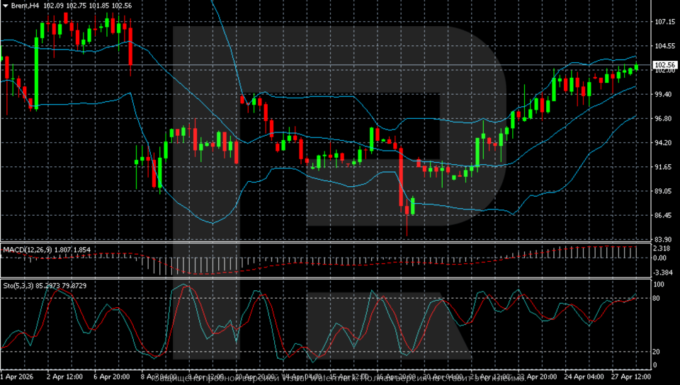 Brent is in a strong position at 102.56 USD, with negotiations continuing, while the risk premium remains high. Find out more in our analysis for 28 April 2026.