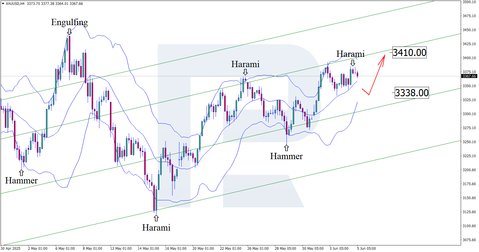 Gold continues to form a pullback, and prices may fall to 3,338 USD as part of a corrective wave. Discover more in our analysis for 5 June 2025.