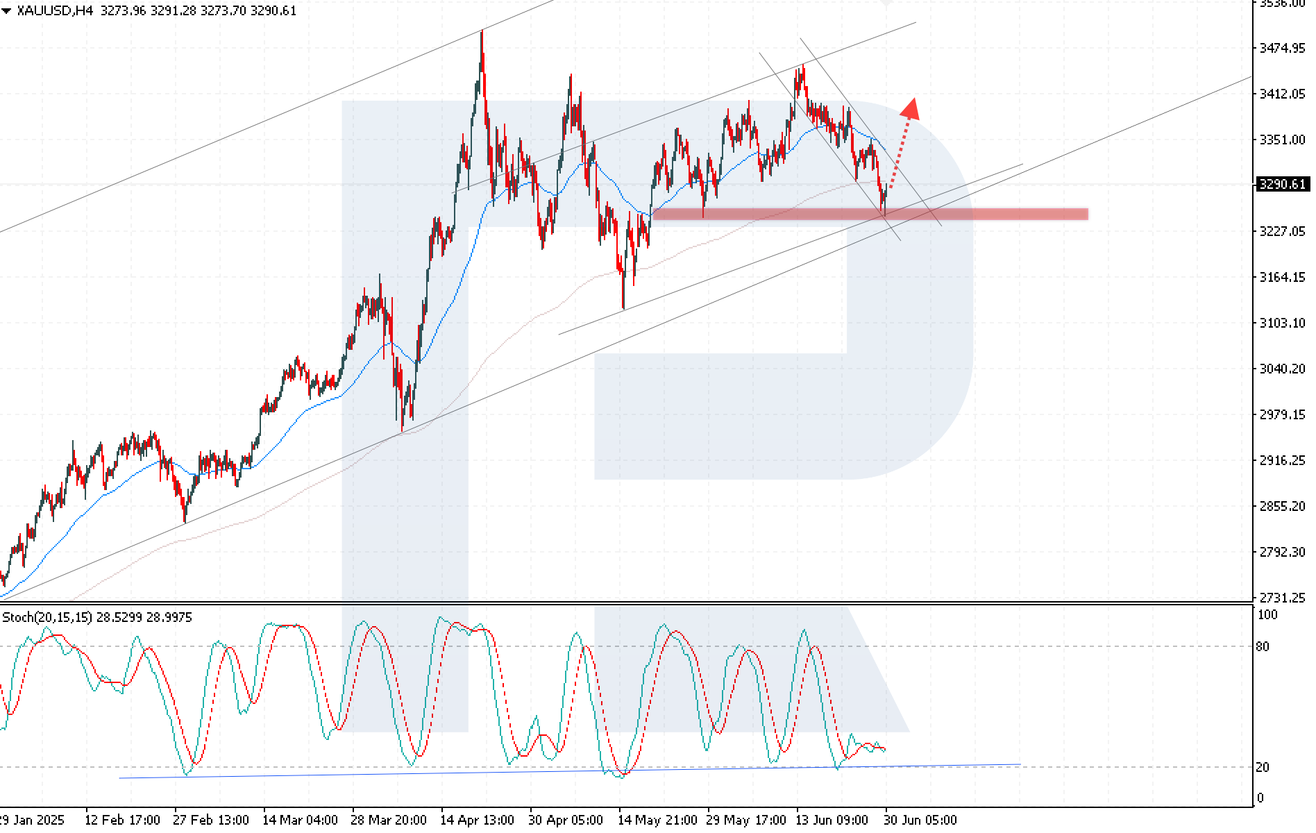 XAUUSD quotes are rising after bouncing off the key support level at 3,250; however, a break below this level could trigger an acceleration of the decline. Details – in our analysis for 30 June 2025.