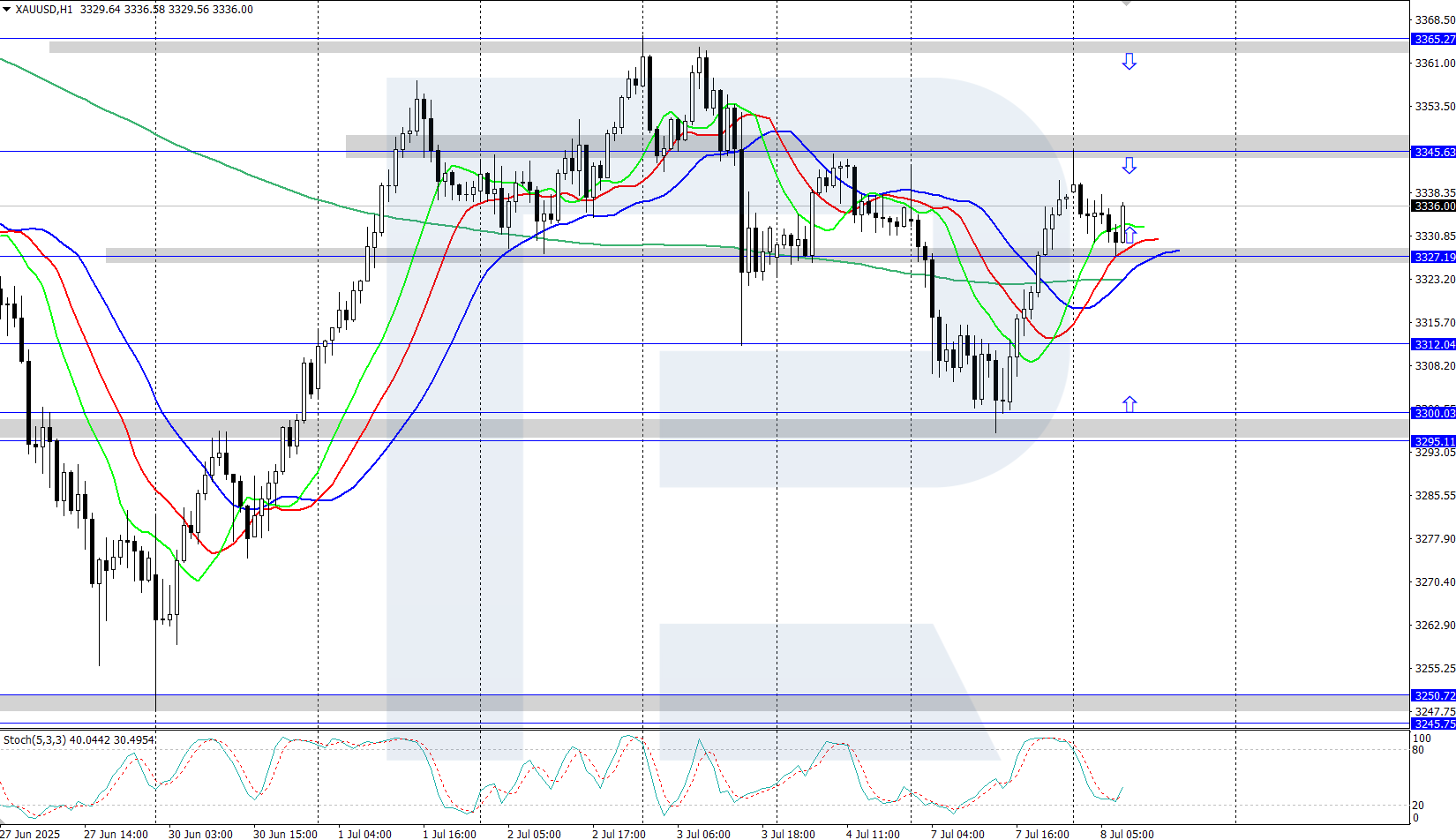 XAUUSD received support from buyers yesterday around the 3,300 USD mark. Market participants await tomorrow’s publication of the FOMC meeting minutes. Details – in our analysis for 8 July 2025.