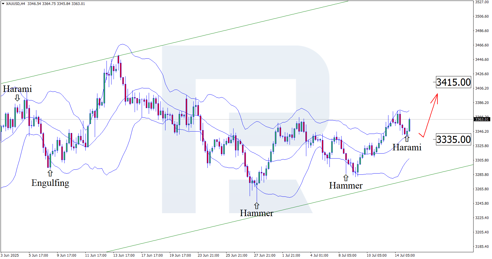 While markets await the FOMC member's speech, XAUUSD prices may rise towards 3,415 USD. Find out more in our analysis for 15 July 2025.