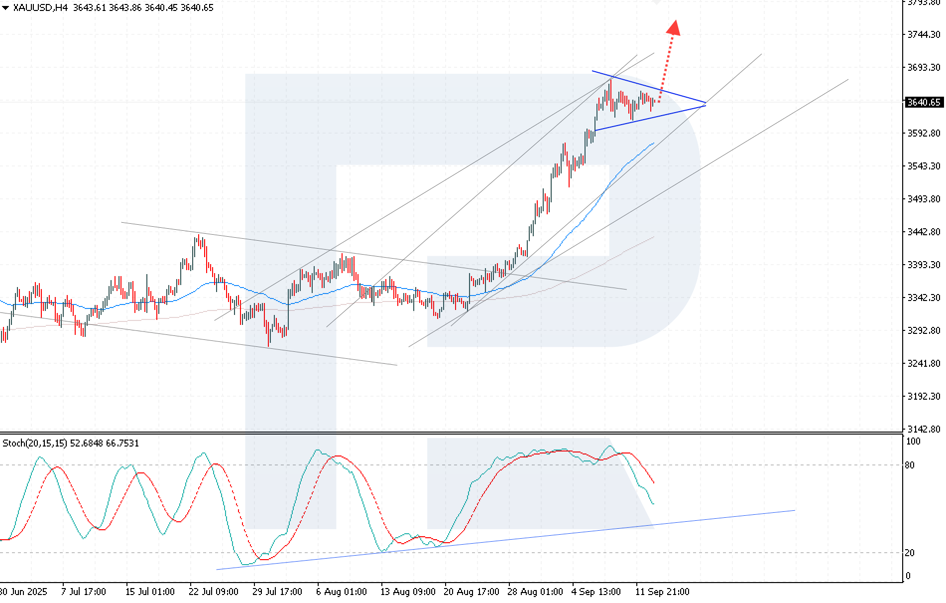 XAUUSD prices retain a bullish bias, remaining close to the key resistance level at 3,660 USD amid expectations of the Fed’s decision. The rate currently stands at 3,640 USD. Discover more in our analysis for 15 September 2025.