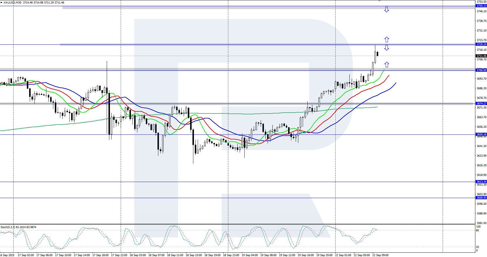 XAUUSD prices continue to strengthen, climbing above their all-time high into the 3,720 USD area as the US dollar weakens following the Fed’s rate cut. Discover more in our analysis for 22 September 2025.