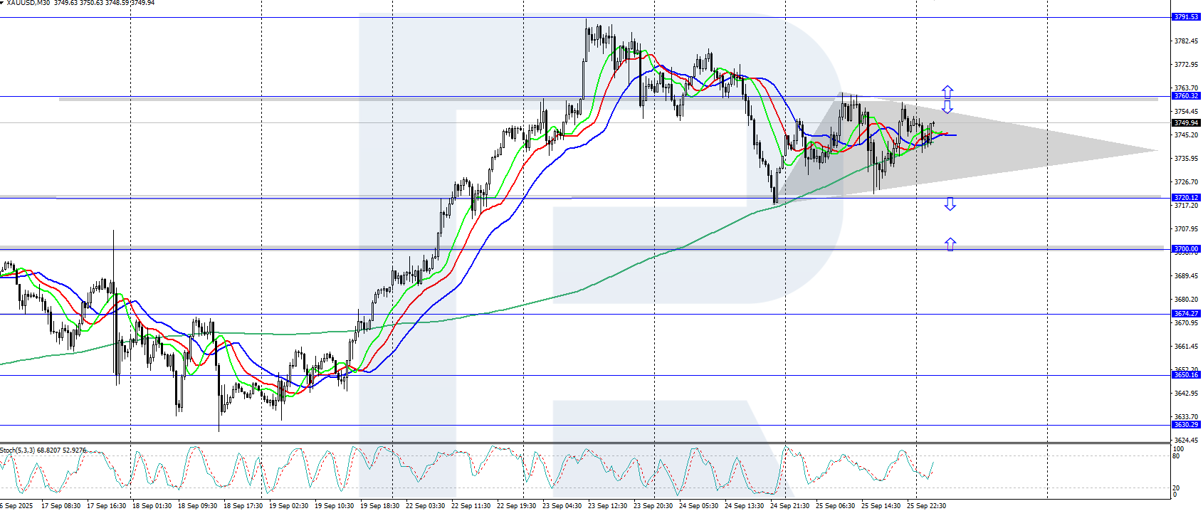 XAUUSD prices are moderately declining after a strong rally that set a new all-time high of 3,791 USD. Today, the market focus is on US inflation. Find more details in our analysis for 26 September 2025.