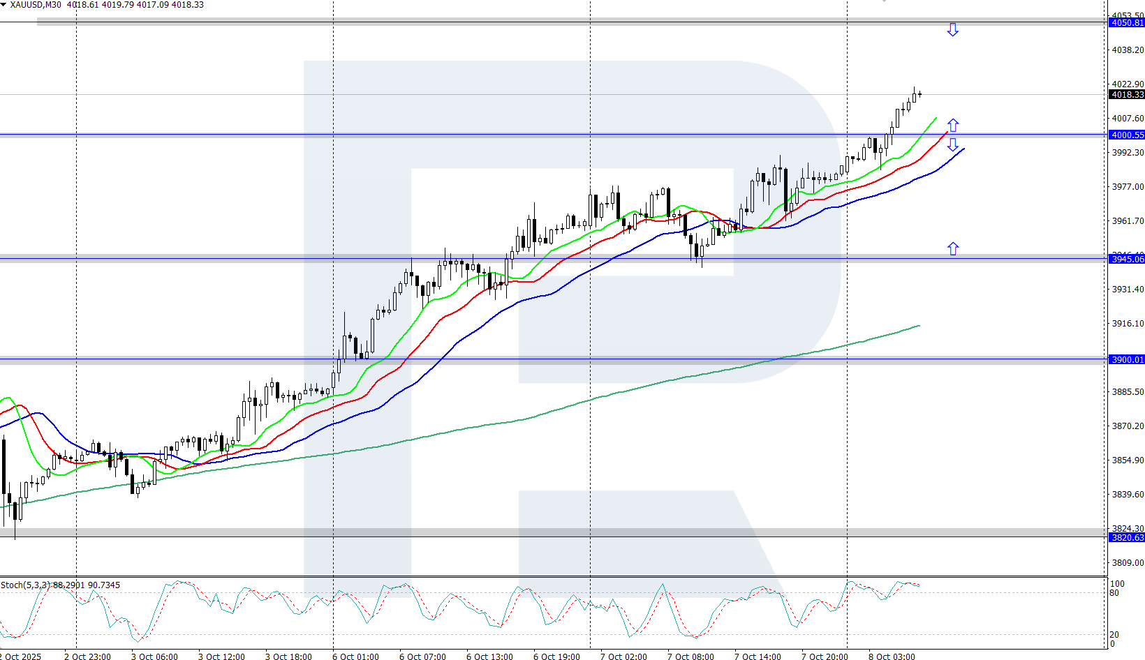 XAUUSD prices continue to strengthen, setting a new all-time high around 4,020 USD amid the current weakness of the US dollar. Discover more in our analysis for 8 October 2025.