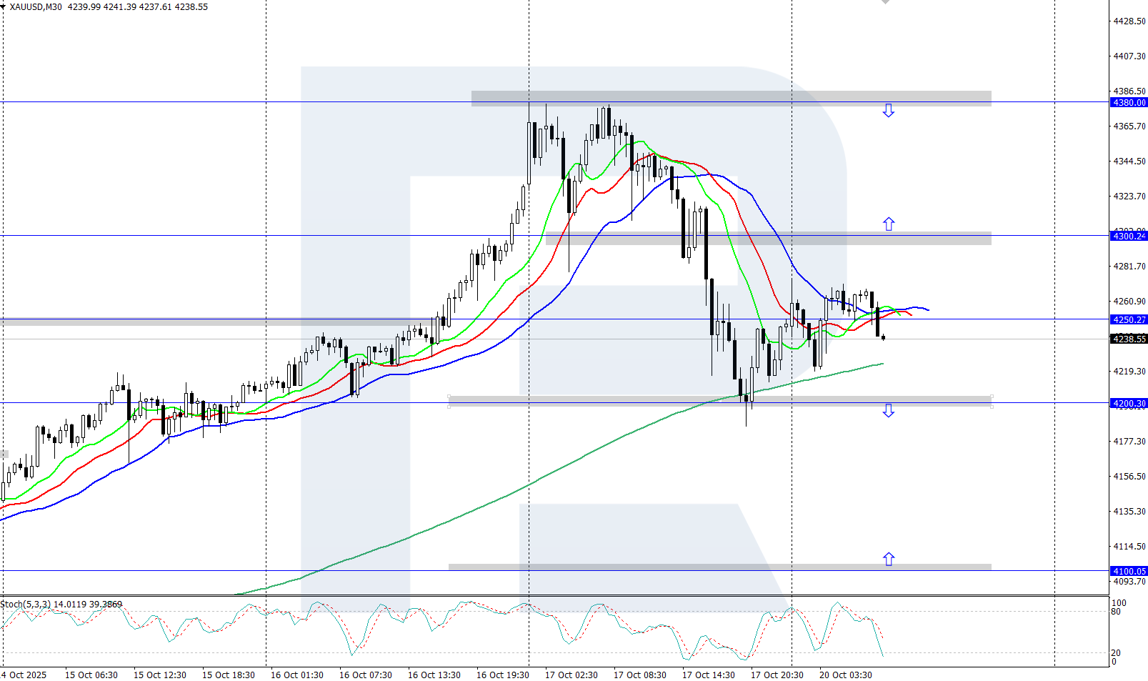 XAUUSD prices have declined to around 4,250 USD after last week’s strong rally, when a new all-time high of 4,380 USD was reached. Discover more in our analysis for 20 October 2025.