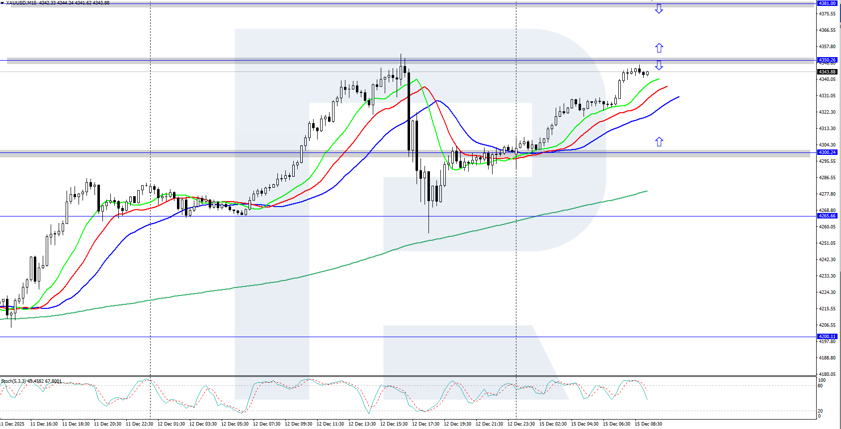 The XAUUSD price has risen into the area near the all-time high of 4,381 USD amid US dollar weakness following the Fed’s rate cut. Details — in our analysis for 15 December 2025.