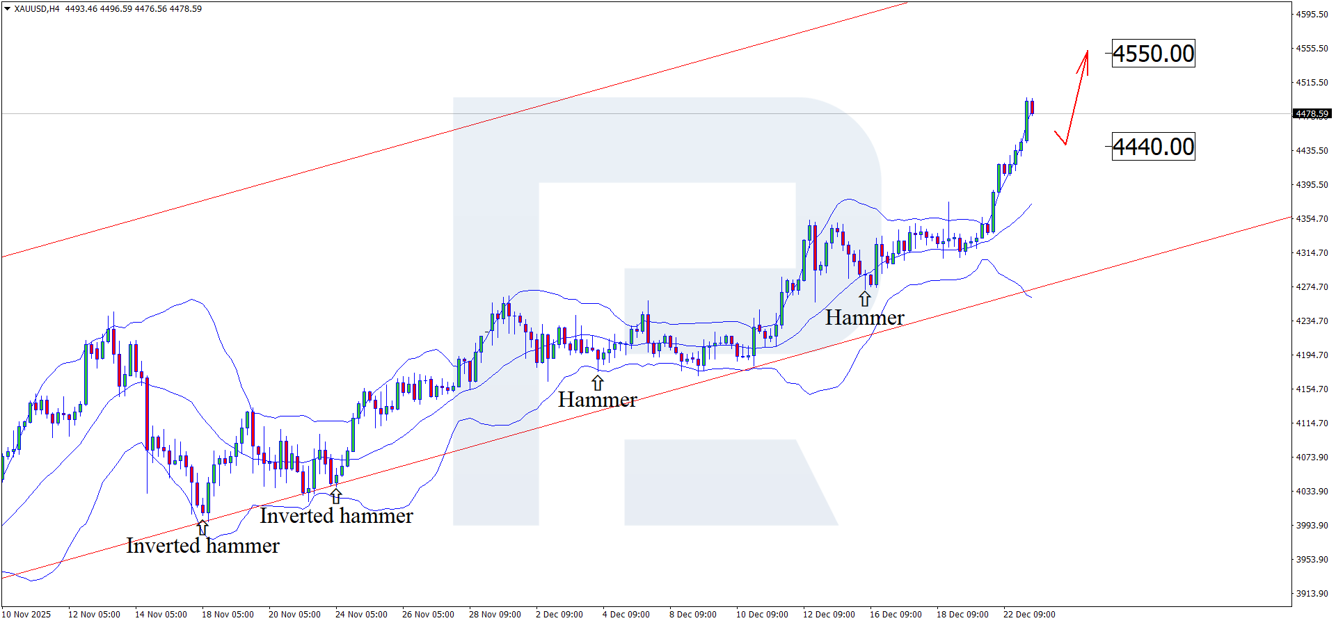 The U.S. dollar continues to lose ground against gold, with XAUUSD setting another record after testing the 4,497 USD level. Details — in our analysis for 23 December 2025.