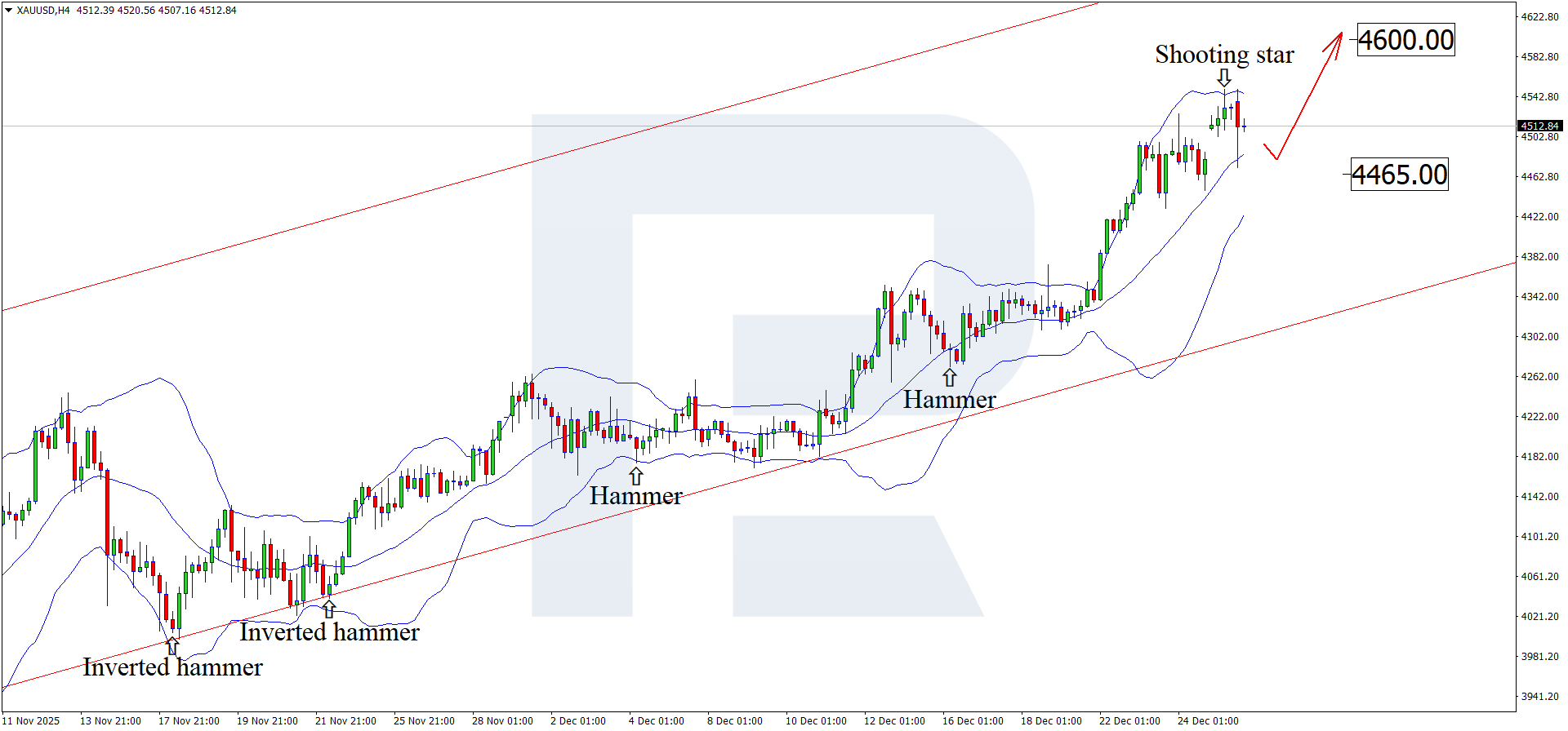 Gold continues to strengthen against the USD, with XAUUSD quotes testing the 4,550 USD level. Details — in our analysis for 29 December 2025.