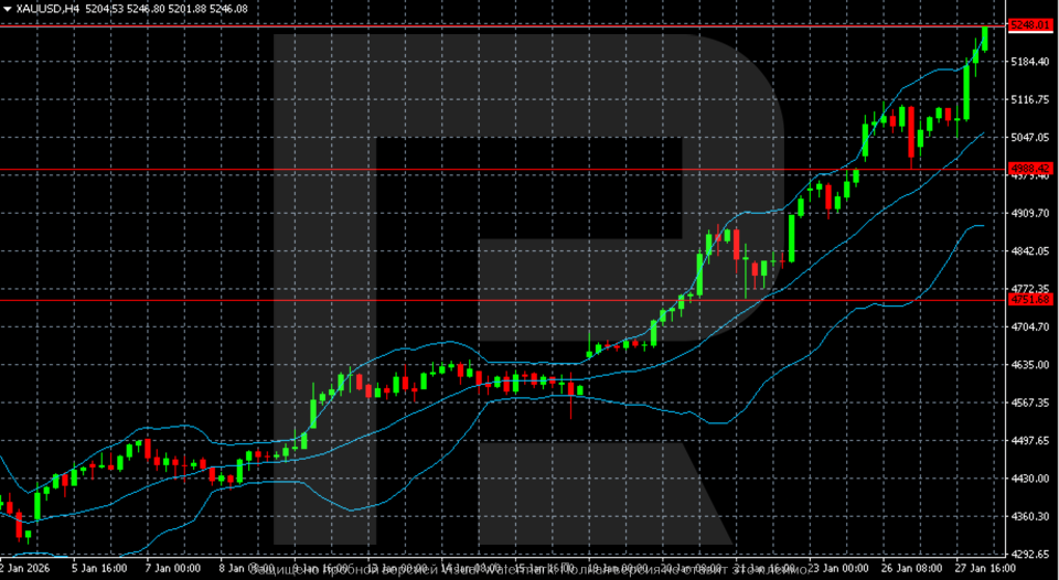 Gold (XAUUSD) continues its rally, supported by strong demand for safe-haven assets and elevated risks. The gold (XAUUSD) forecast for today, 28 January 2026, does not rule out growth towards 5,280.