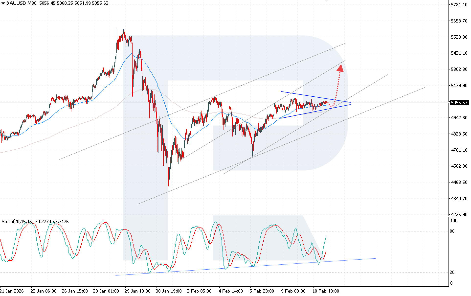 XAUUSD prices remain in a steady growth phase amid easing expectations for Federal Reserve policy and weak US macroeconomic data, currently standing at 5,055 USD. Find more details in our analysis for 11 February 2026.