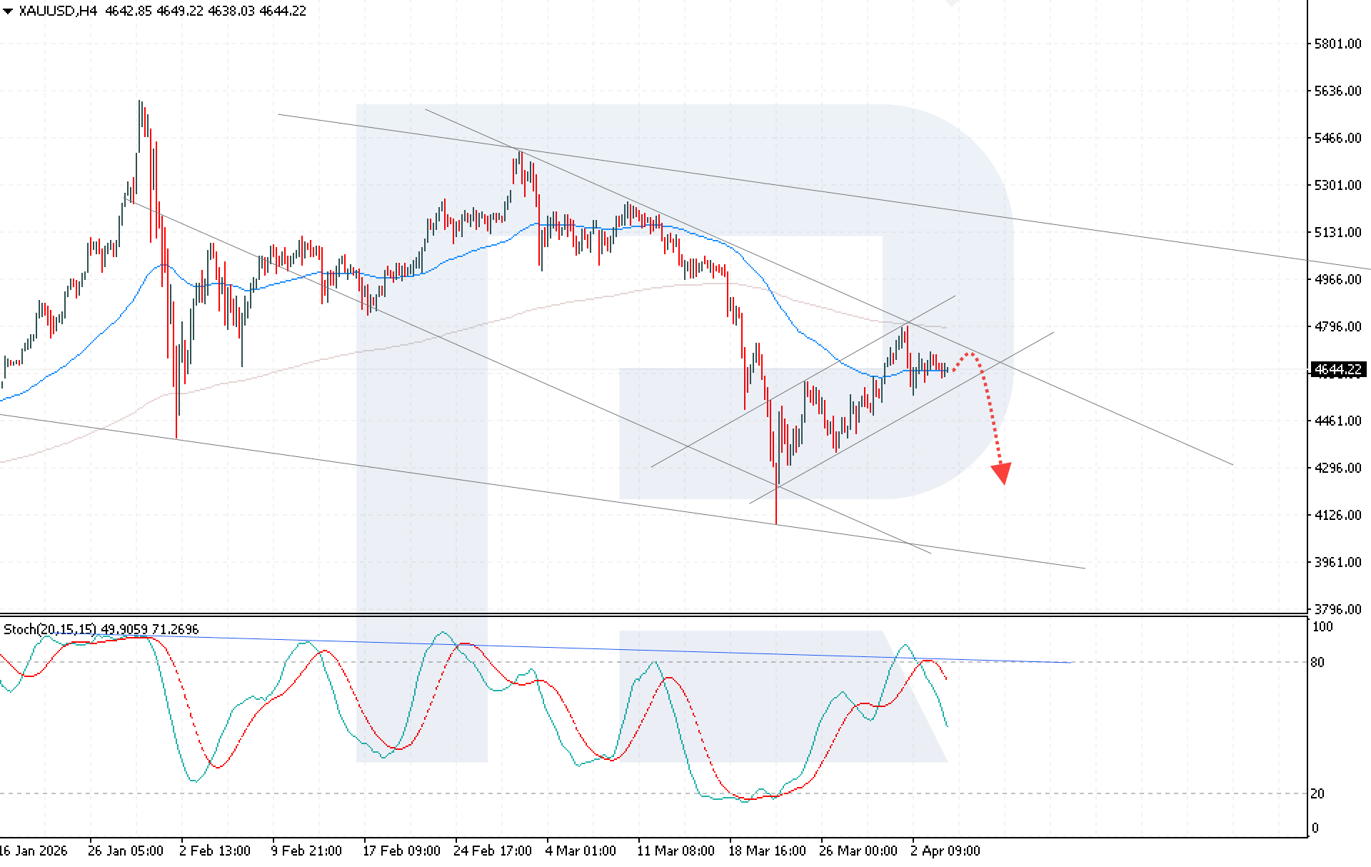 XAUUSD quotes remain under pressure amid heightened geopolitical risks and a failure to consolidate above the key resistance level. Prices currently stand at 4,644 USD. Find out more in our analysis for 7 April 2026.