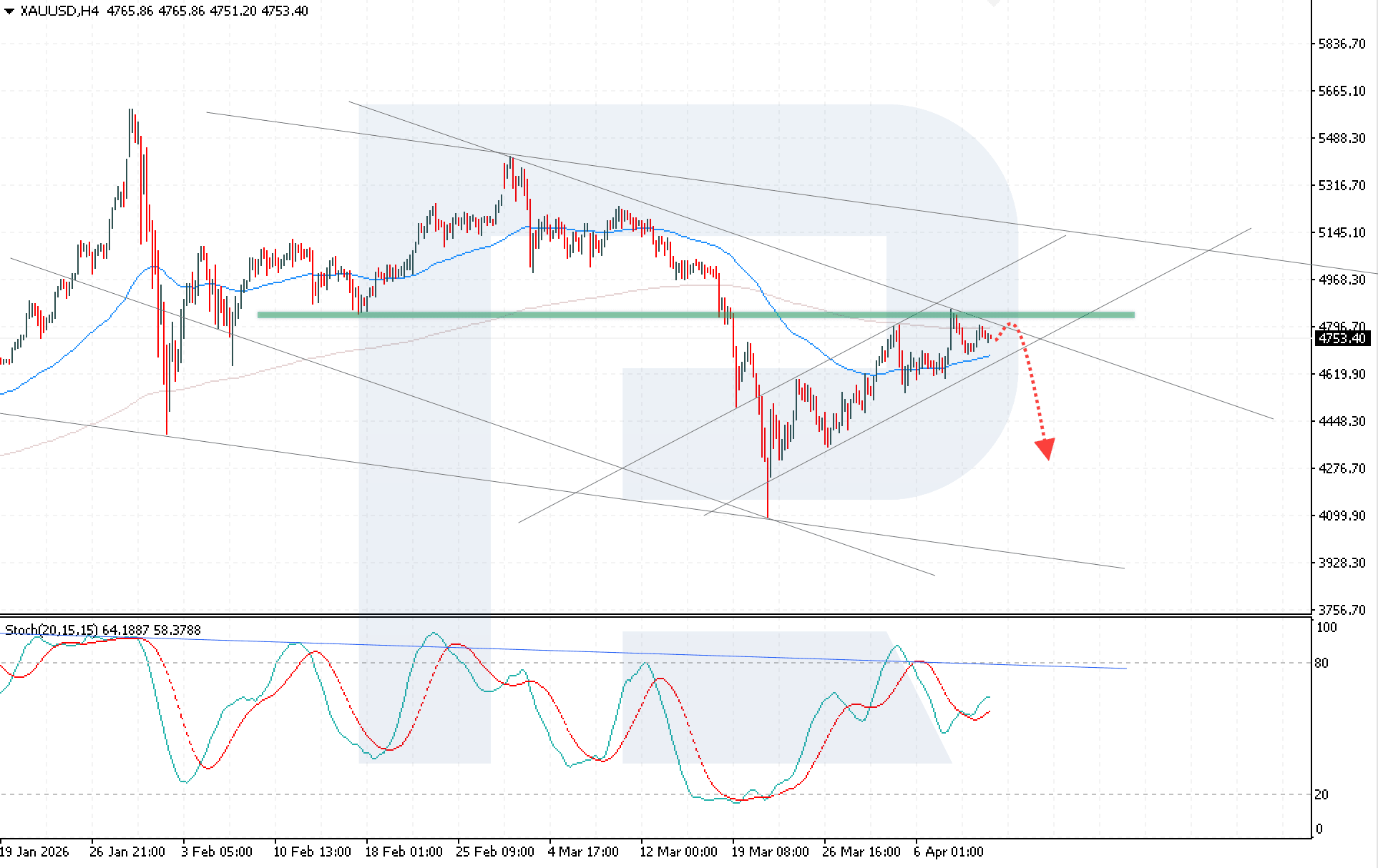 XAUUSD prices are balancing below key resistance while the market assesses geopolitics and signals from the Fed. The current quote is 4,753 USD. More details are in our analysis for 10 April 2026