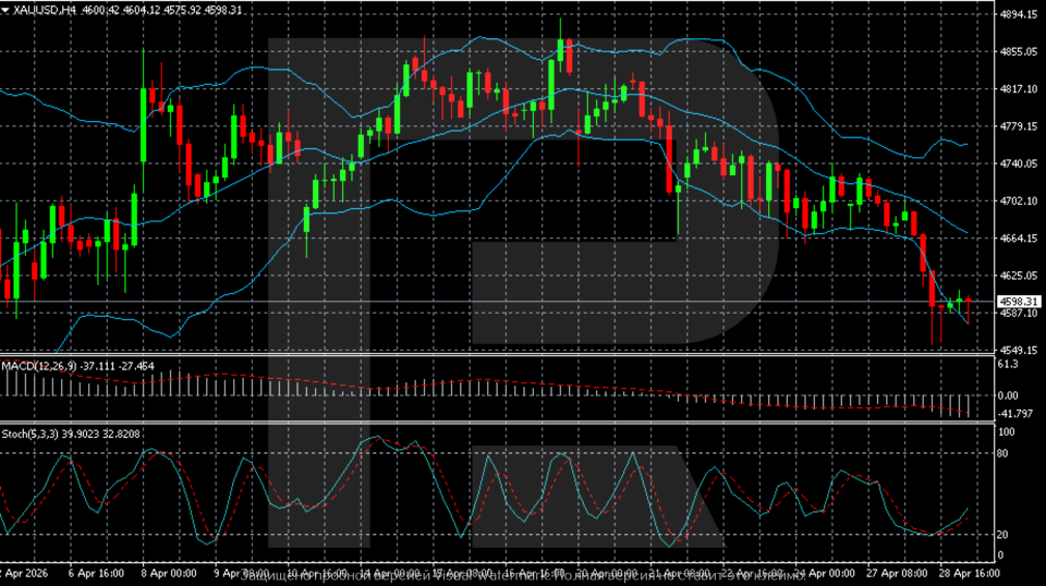 Gold (XAUUSD) is declining to 4,598 USD as inflation risks are exerting too much pressure. Discover more in our analysis for 29 April 2026.