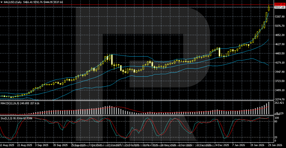 The fundamental outlook for gold remains positive. XAUUSD hit a new all-time high, rising above 5,500 USD per ounce, driven by US dollar weakness and ongoing economic and geopolitical risks.