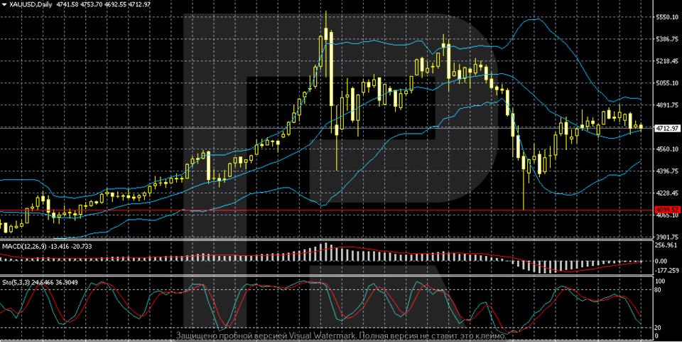 Technically, the market has entered a consolidation phase after plunging from 5,400–5,500 to 4,300–4,400. The current movement around 4,700 looks like a recovery without a clear trend: choppy swings with alternating impulses and pullbacks. Prices are hovering around the middle Bollinger Band, and the range is narrowing. MACD remains in negative territory, but downside momentum is weakening; the Stochastic Oscillator indicates the risk of a short-term pullback. Range: support levels at 4,500 and 4,300, and resistance at 4,900–5,000.