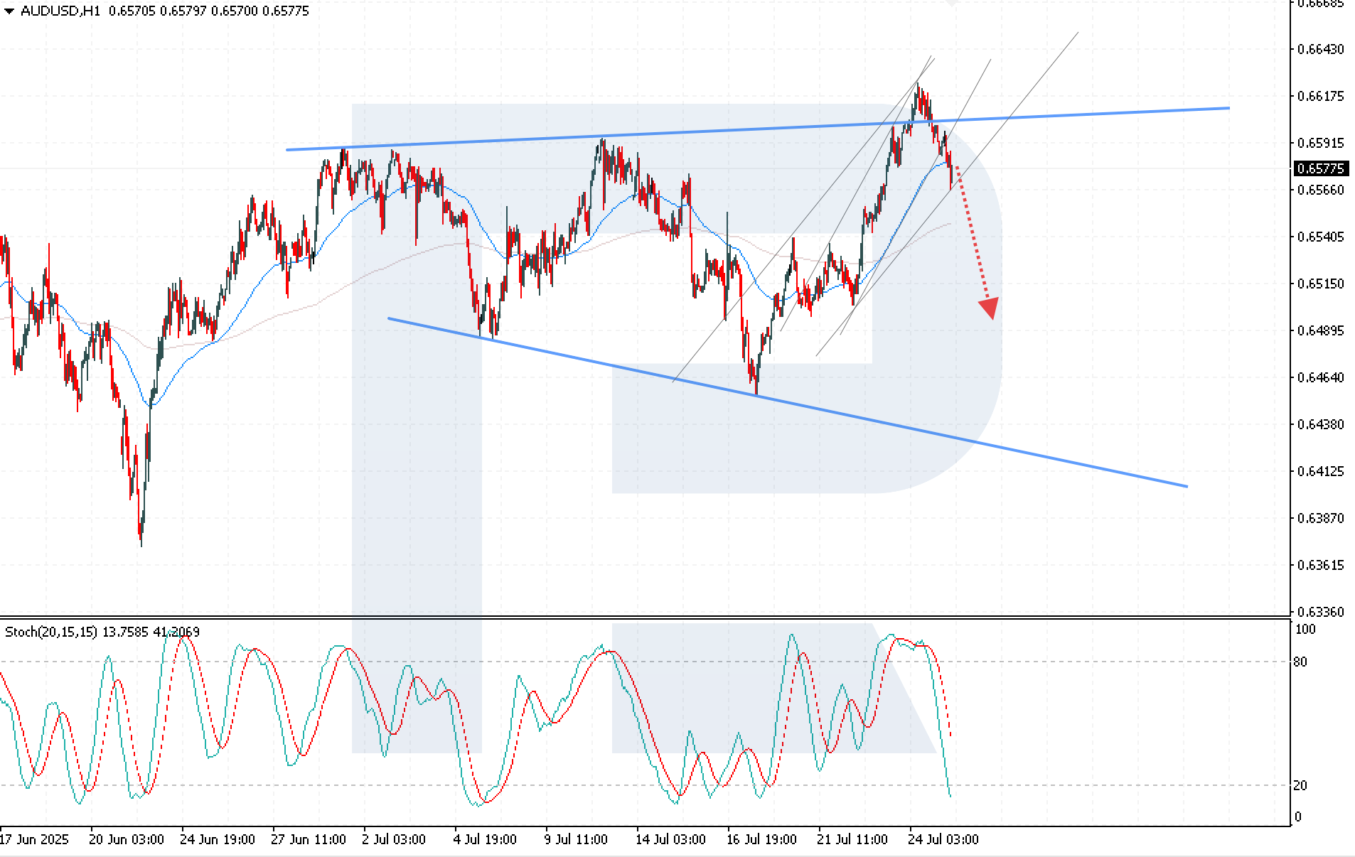 The AUDUSD rate is falling as strong US labour market data continues to support the US dollar. The current quote stands at 0.6577. Discover more in our analysis for 25 July 2025.