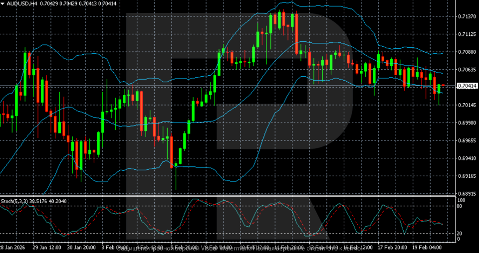 The AUDUSD pair continues to move lower. The forecast for 20 February 2026 suggests selling pressure towards 0.7015.