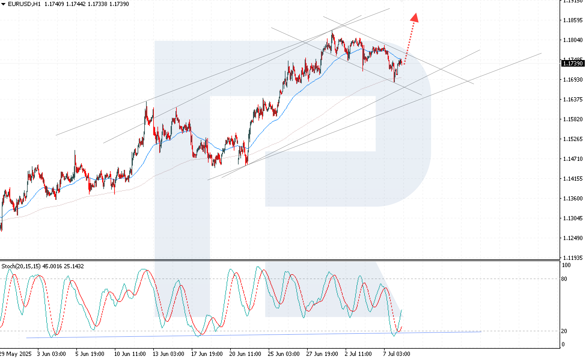 EURUSD is rising amid continued uncertainty over the Fed’s future policy. Current quote – 1.1739. Details – in our analysis for 8 July 2025.