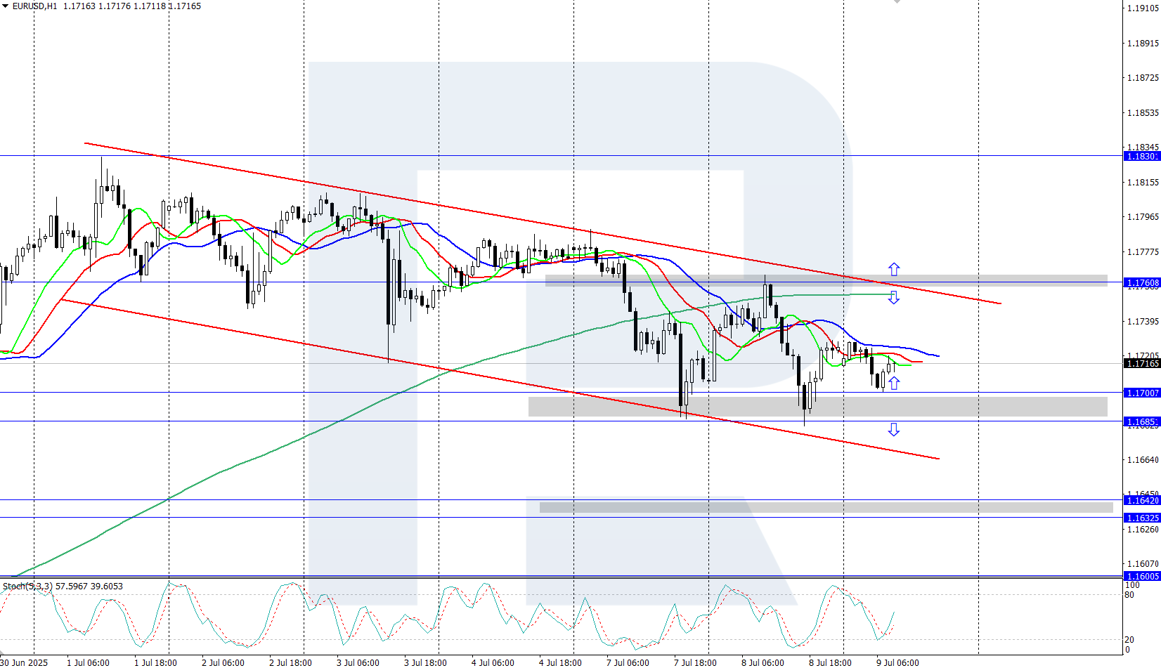EURUSD rate is rising, climbing above 1.1700 amid expectations of the FOMC minutes publication, which may hint at an imminent rate cut. Details – in our analysis for 9 July 2025.