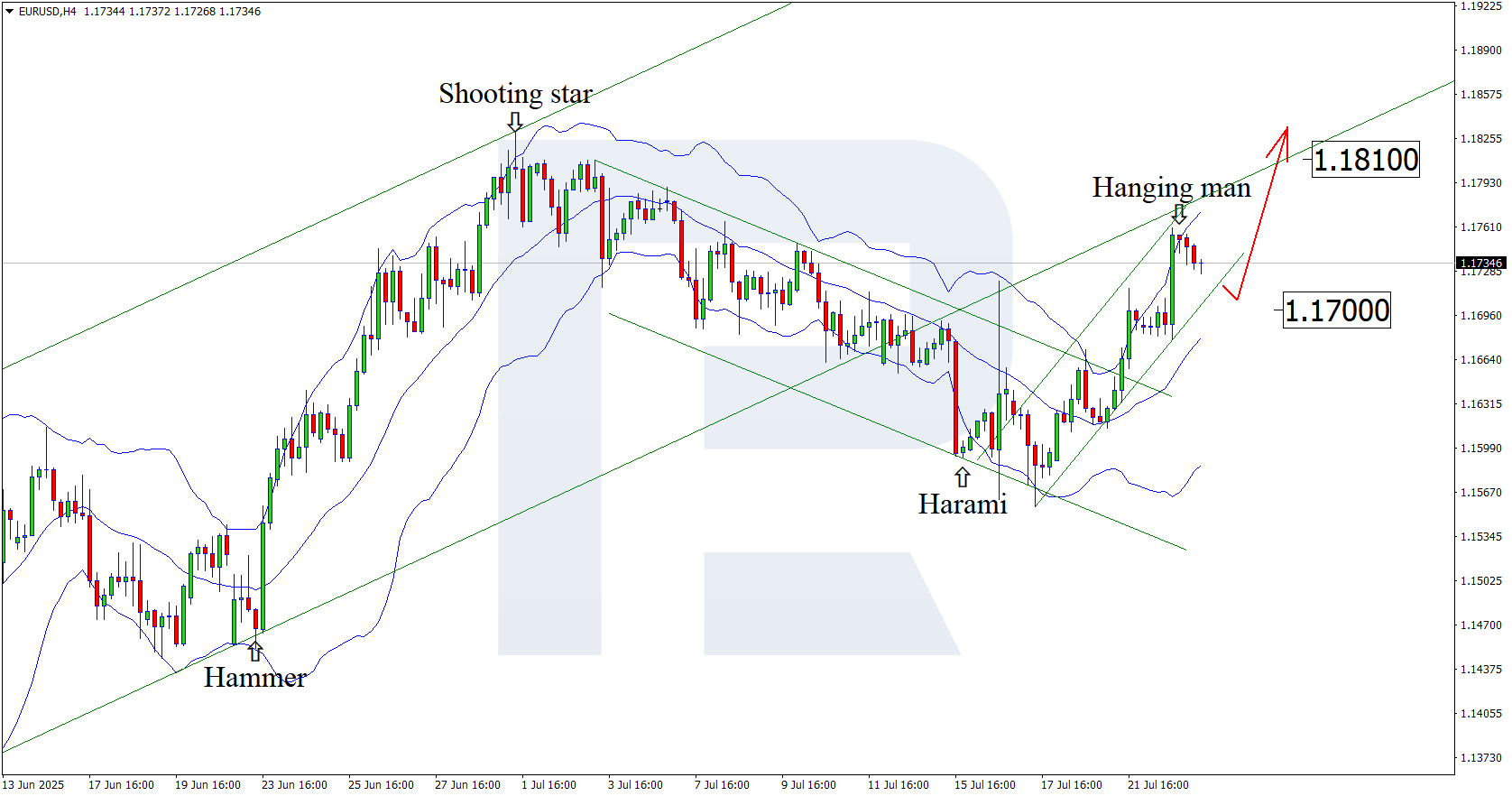 A decline in US existing home sales is a negative factor for the USD. EURUSD may continue rising towards 1.1810 after a correction. Full details in our analysis for 23 July 2025.
