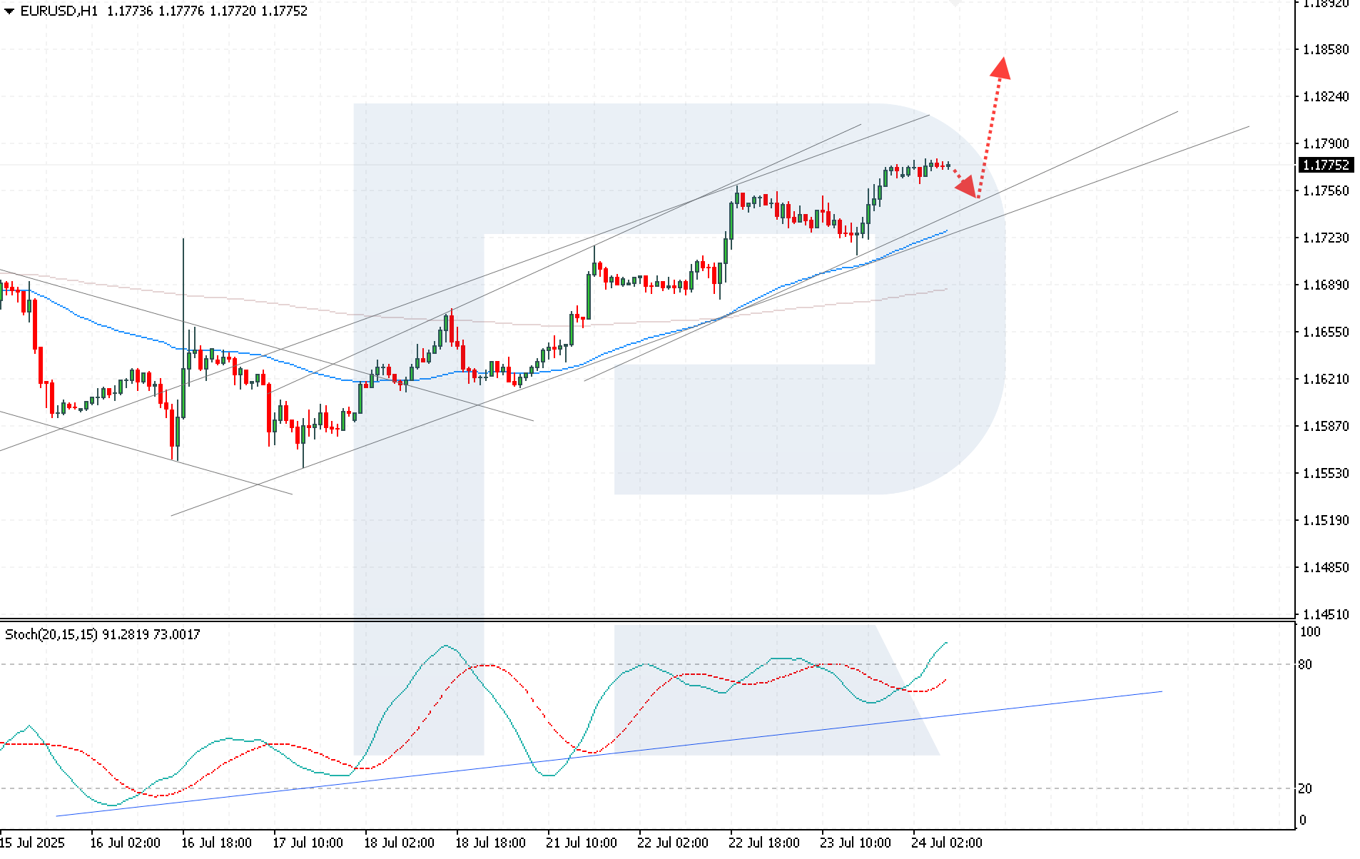 The EURUSD pair maintains its steady bullish momentum, with no signs of weakening so far. The current rate stands at 1.1775. Find more details in our analysis for 24 July 2025.