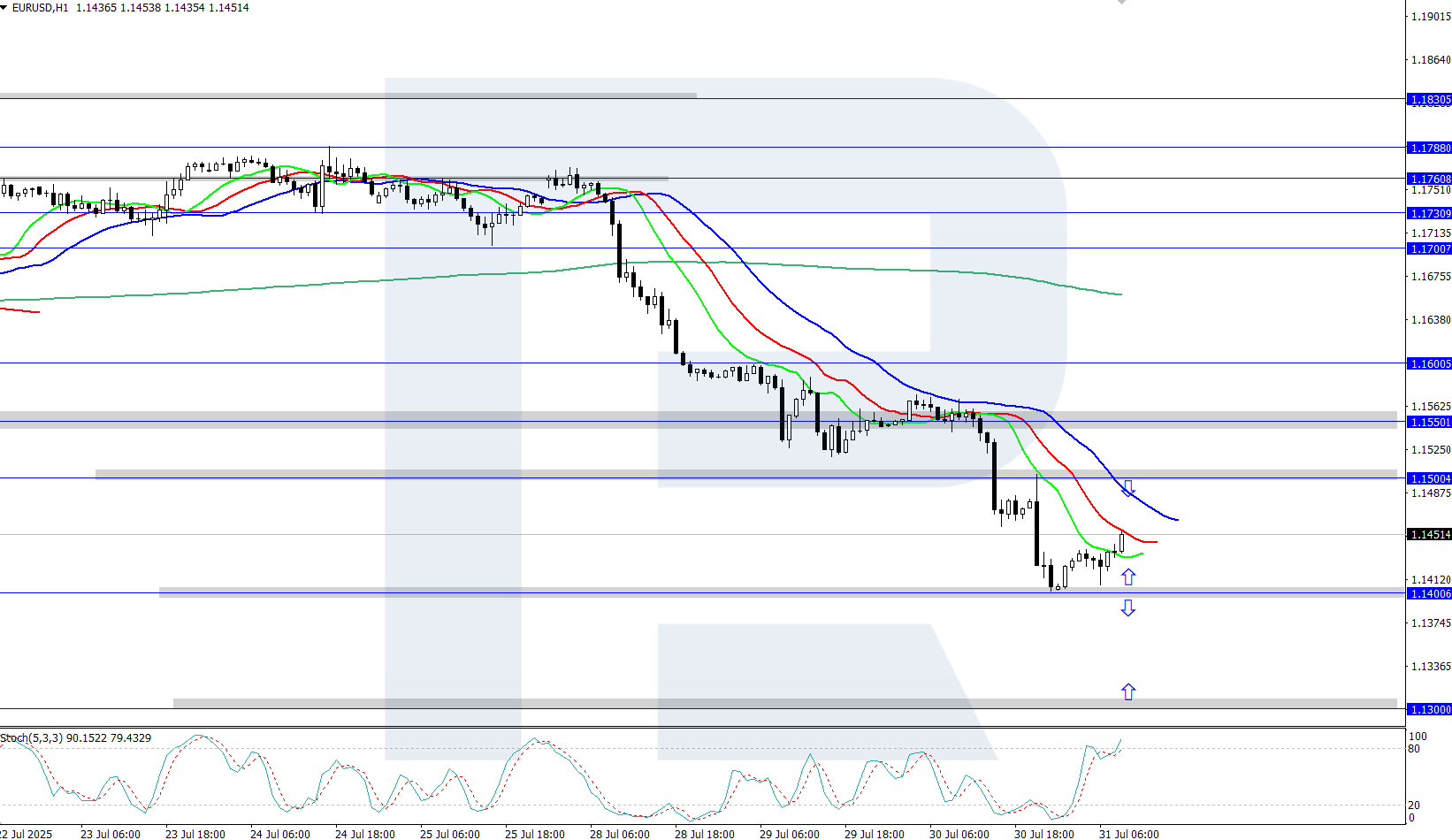 The EURUSD rate corrected to the 1.1400 area after the Fed decided to keep rates unchanged and following a slowdown in eurozone GDP growth. Find more details in our analysis for 31 July 2025.