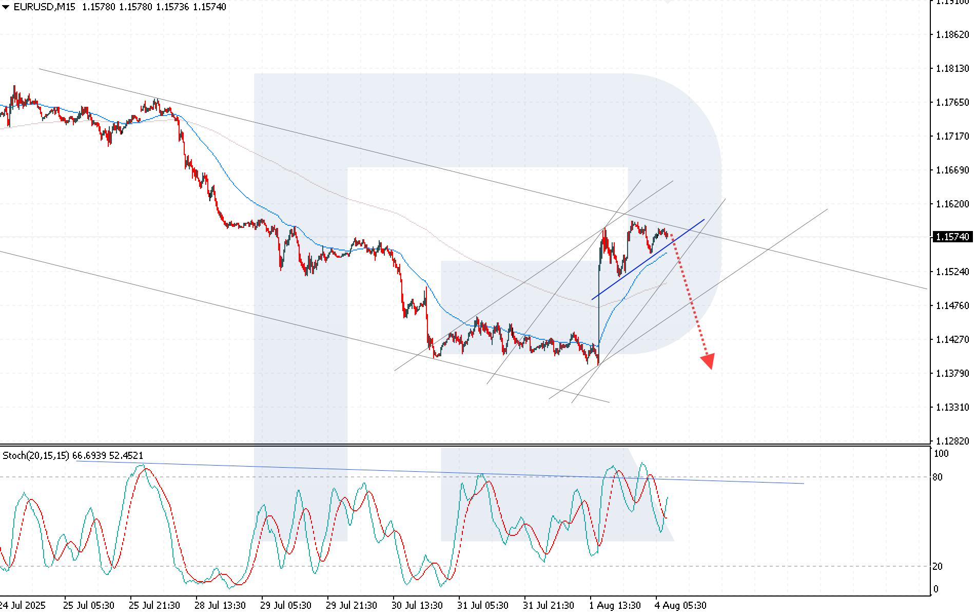 The EURUSD pair continues its upward attempt as weak US macroeconomic data weighs on the US dollar. The price currently stands at 1.1574. Discover more in our analysis for 4 August 2025.