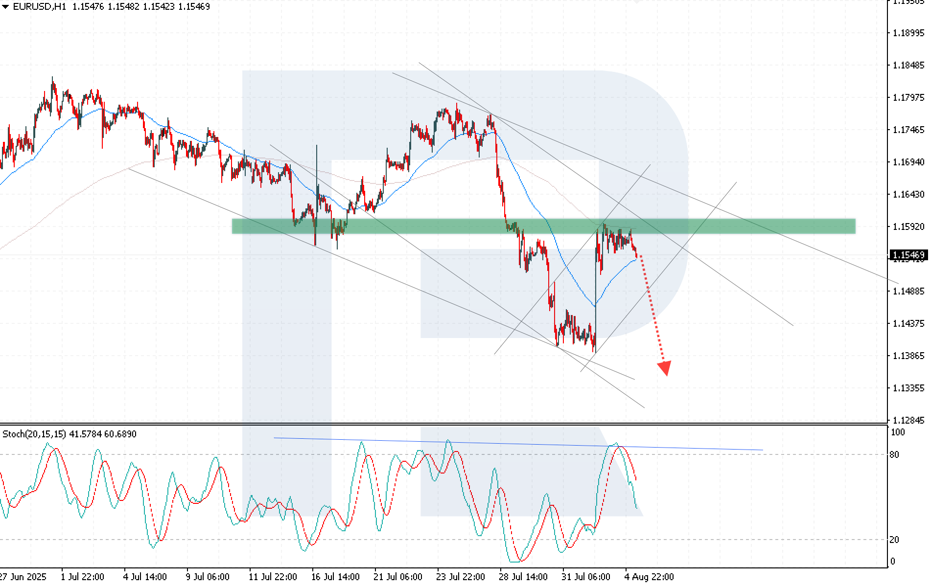 The EURUSD rate attempts to extend its rally as weak US macroeconomic data puts pressure on the dollar. The current quote is 1.1574. Find out more in our analysis for 5 August 2025.