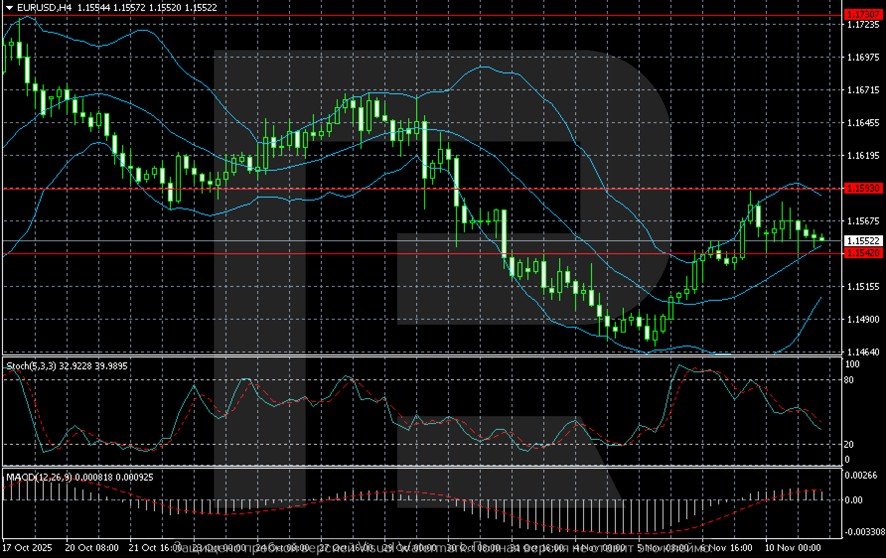 The EURUSD pair maintains a sideways trend with a moderate bearish bias, reflecting market caution ahead of new signals from the Fed and upcoming US economic data. The EURUSD forecast for today, 11 November 2025, suggests a slide towards 1.1540.