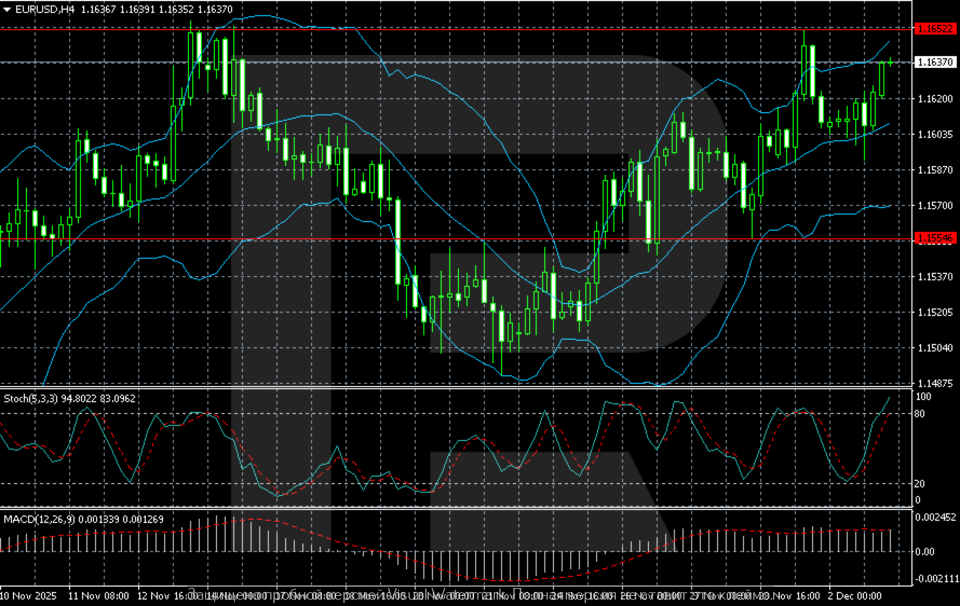 The EURUSD pair is rising towards 1.1637. Investors are increasingly betting on rapid monetary easing by the Federal Reserve. Find more details in our analysis for 3 December 2025.