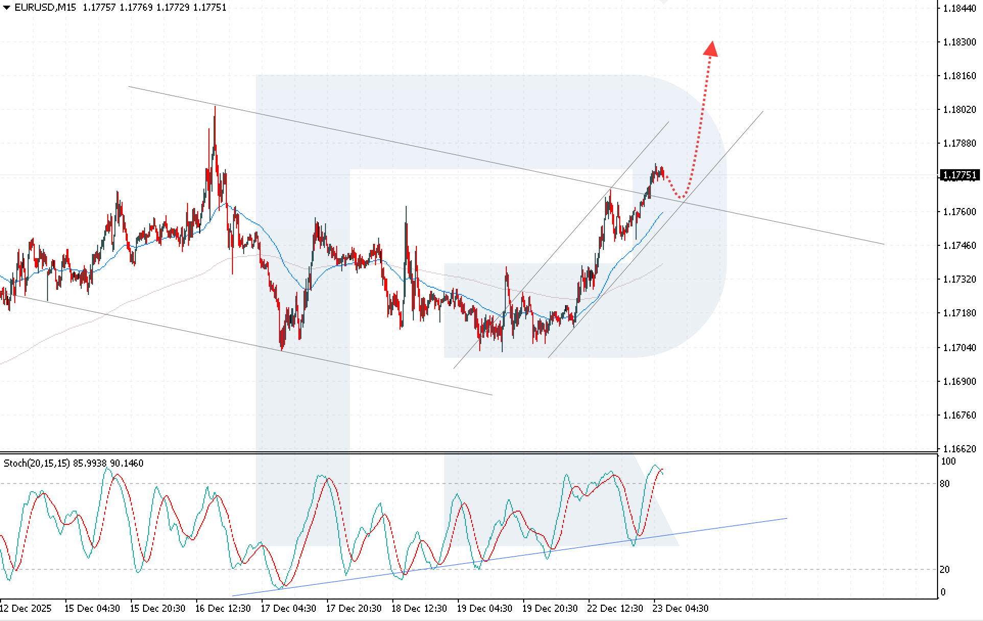 EURUSD is strengthening, reflecting U.S. dollar weakness amid rising expectations of monetary policy easing by the Federal Reserve. The current quote is 1.1775. Details — in our analysis for 23 December 2025.