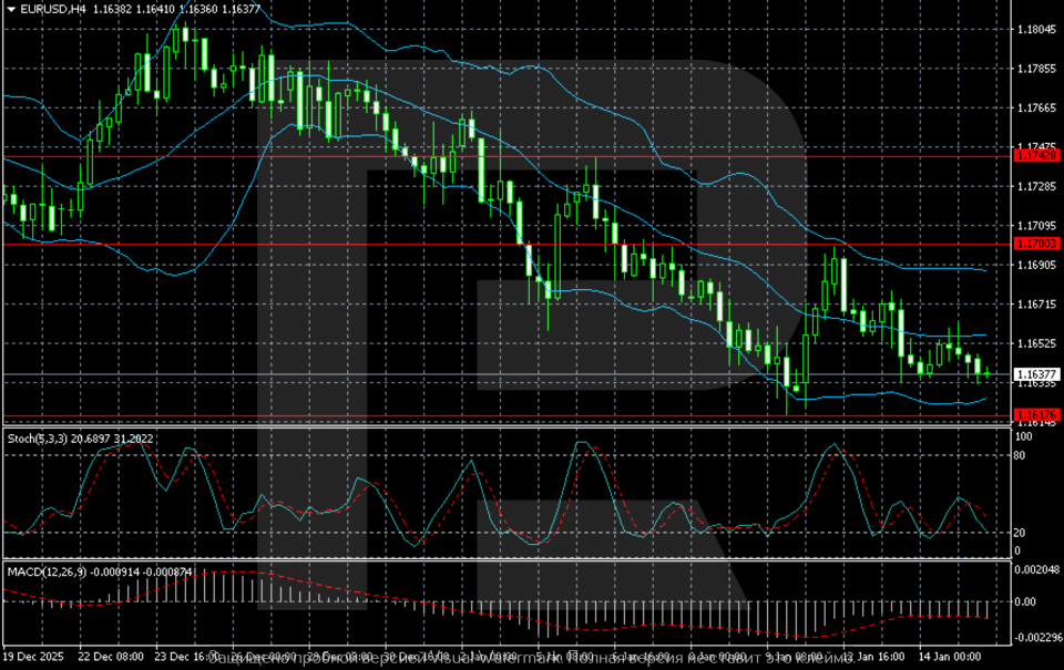 The EURUSD pair declined to 1.1637. The market is closely monitoring US policy and economic data. Find more details in our analysis for 15 January 2026.