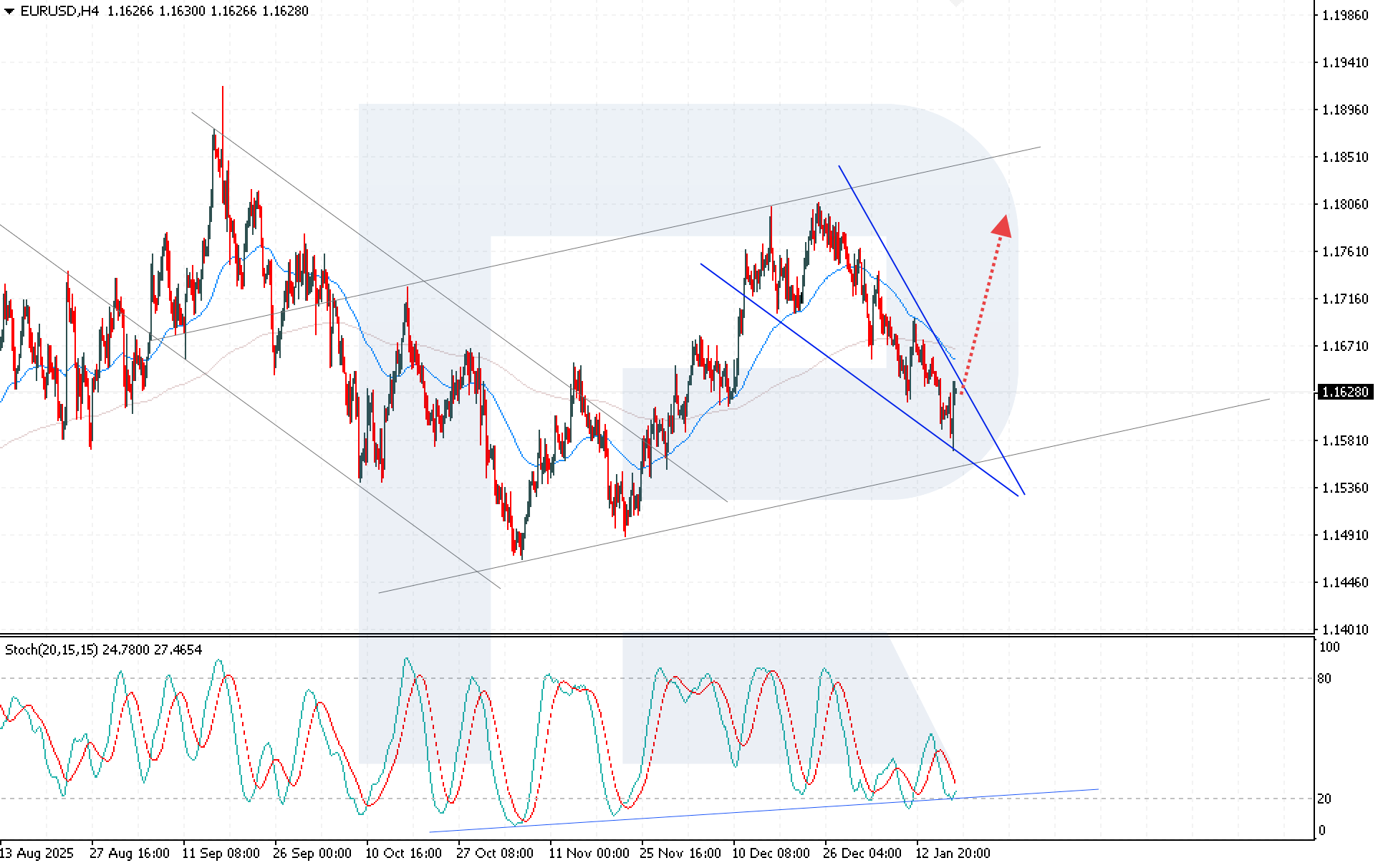 The EURUSD rate is rising sharply, with buyers attempting to consolidate above the 1.1615 resistance level. The rate currently stands at 1.1628. Discover more in our analysis for 19 January 2026.