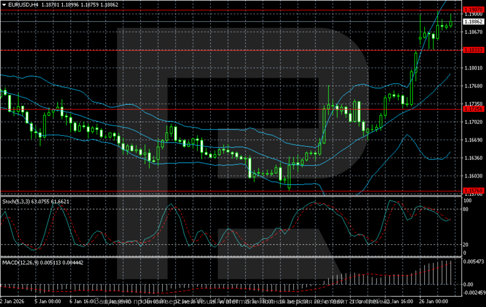 The EURUSD pair maintains a bullish trend. The EURUSD forecast for today, 27 January 2026, suggests an attempt to consolidate above the 1.1900 level.