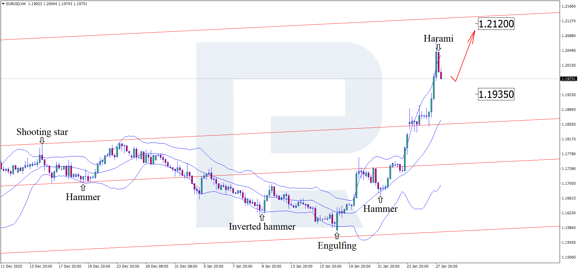 Ahead of the Fed’s interest rate decision, the EURUSD pair made a sharp move higher and is trading near 1.1995. Discover more in our analysis for 28 January 2026.