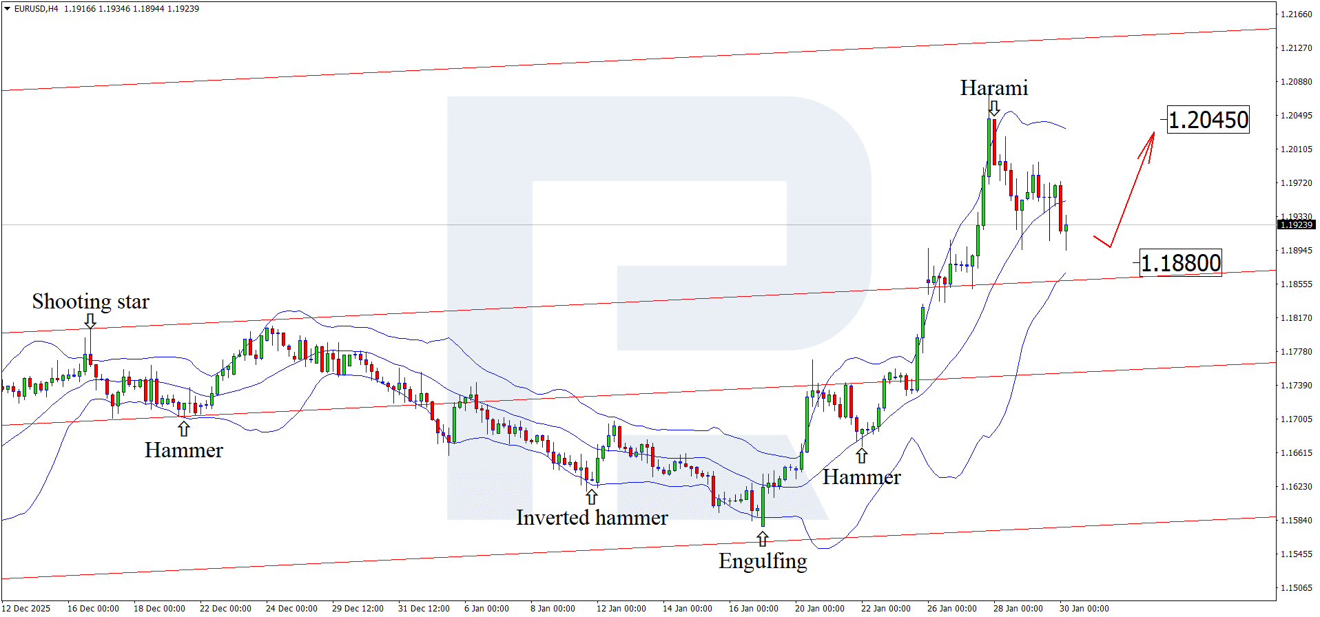 The EURUSD pair continues its correction while awaiting data from the US and the eurozone, with quotes testing the 1.1925 level. Discover more in our analysis for 30 January 2026.