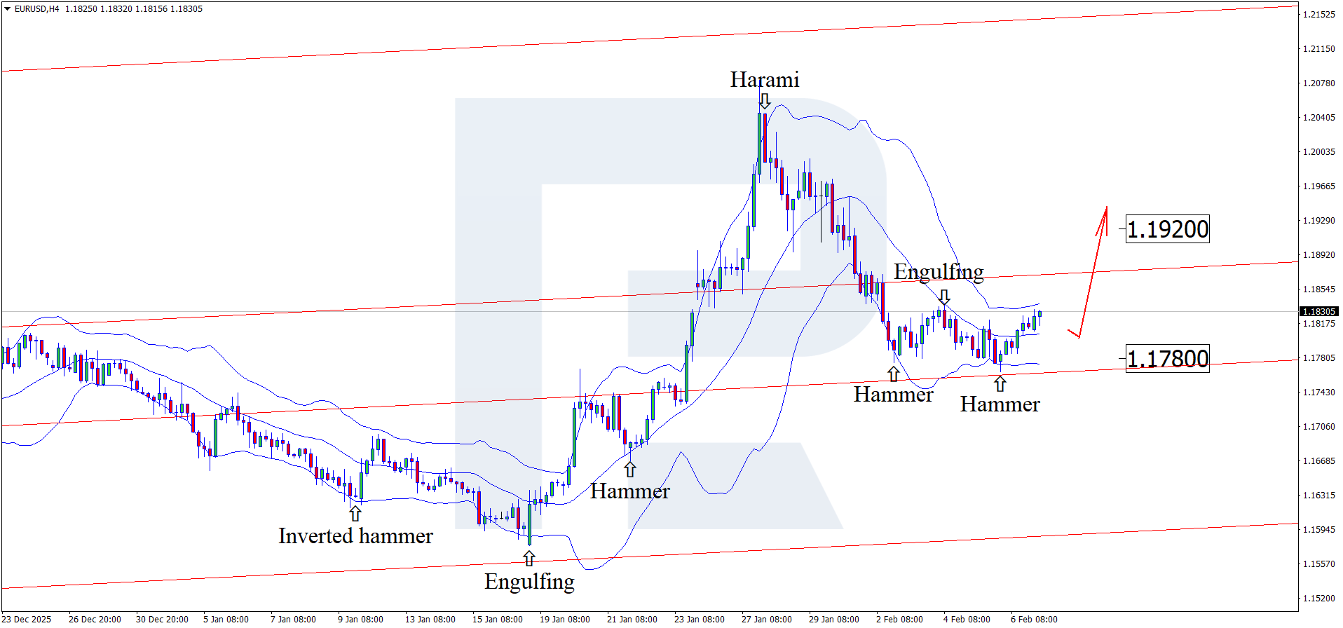 Ahead of the ECB President's speech, the euro is strengthening against the USD, with the price testing the 1.1840 level. Discover more in our analysis for 9 February 2026.