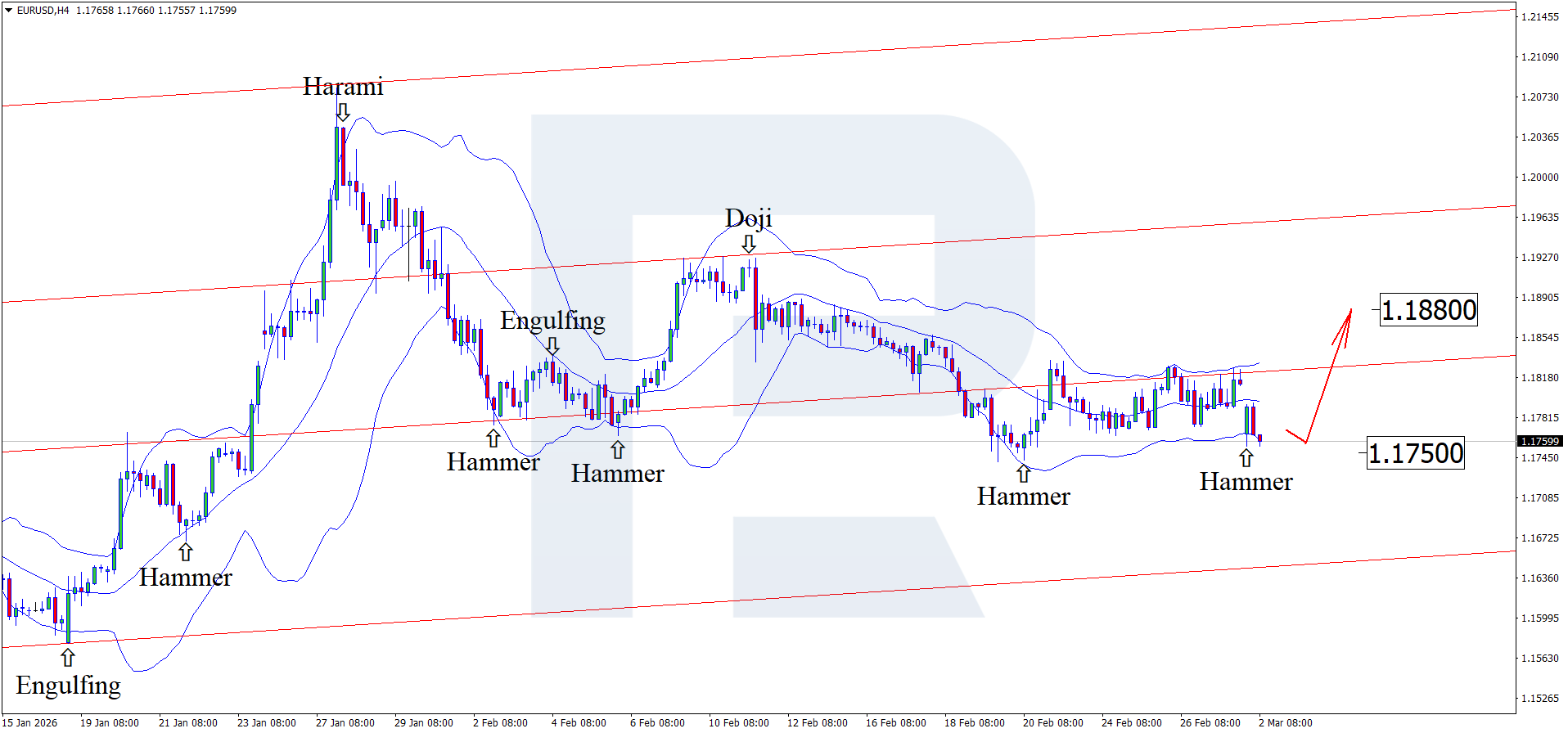 The forecast for 2 March 2026 also factors in the US PMI data release due today. The indicator is projected to decline to 51.2 from the previous 52.4. Although the reading is expected to remain above 50.0, a slowdown compared to the previous figure may weaken the USD against the euro.