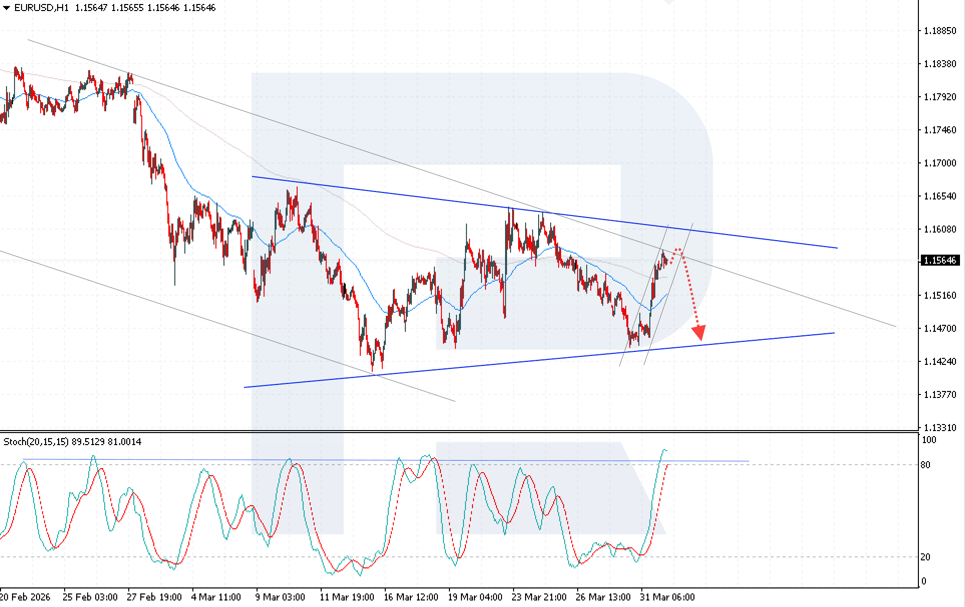 The EURUSD rate is holding within a Triangle pattern, signalling that a resolution is approaching. The current quote is 1.1564. More details are in our analysis for 1 April 2026.