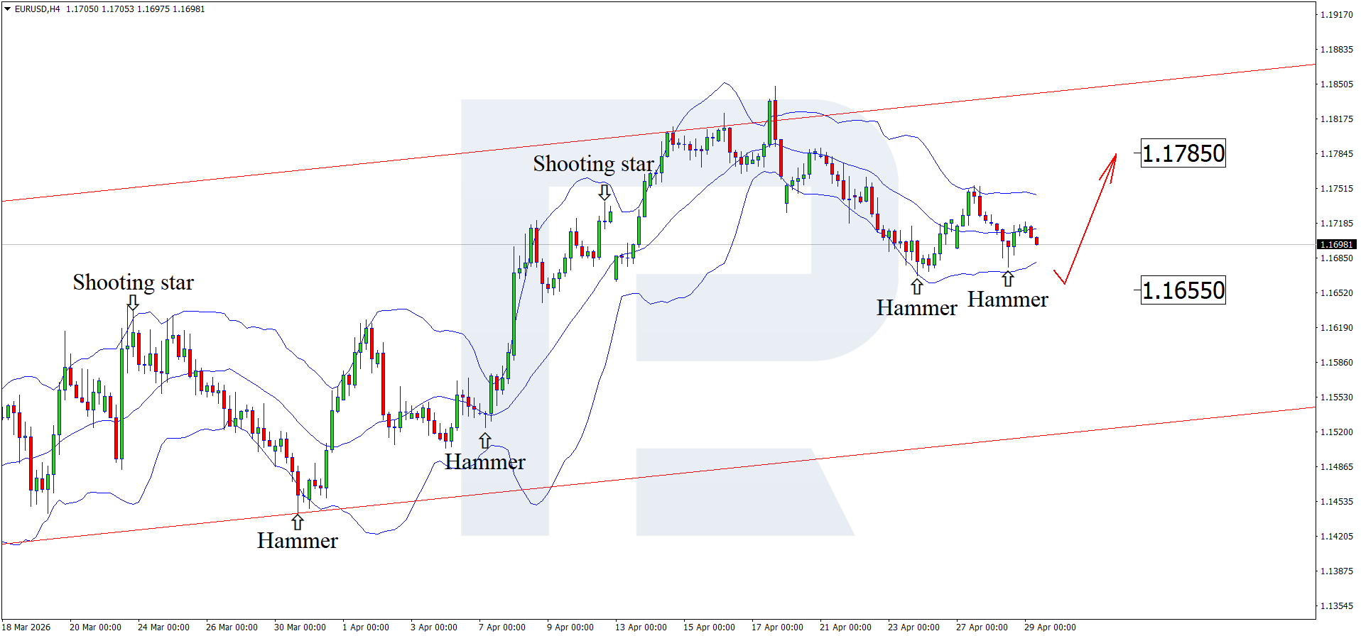 The EURUSD pair has frozen in anticipation of interest rate decisions from the Federal Reserve and the ECB, with quotes testing the 1.1700 level. Find out more in our analysis for 29 April 2026.