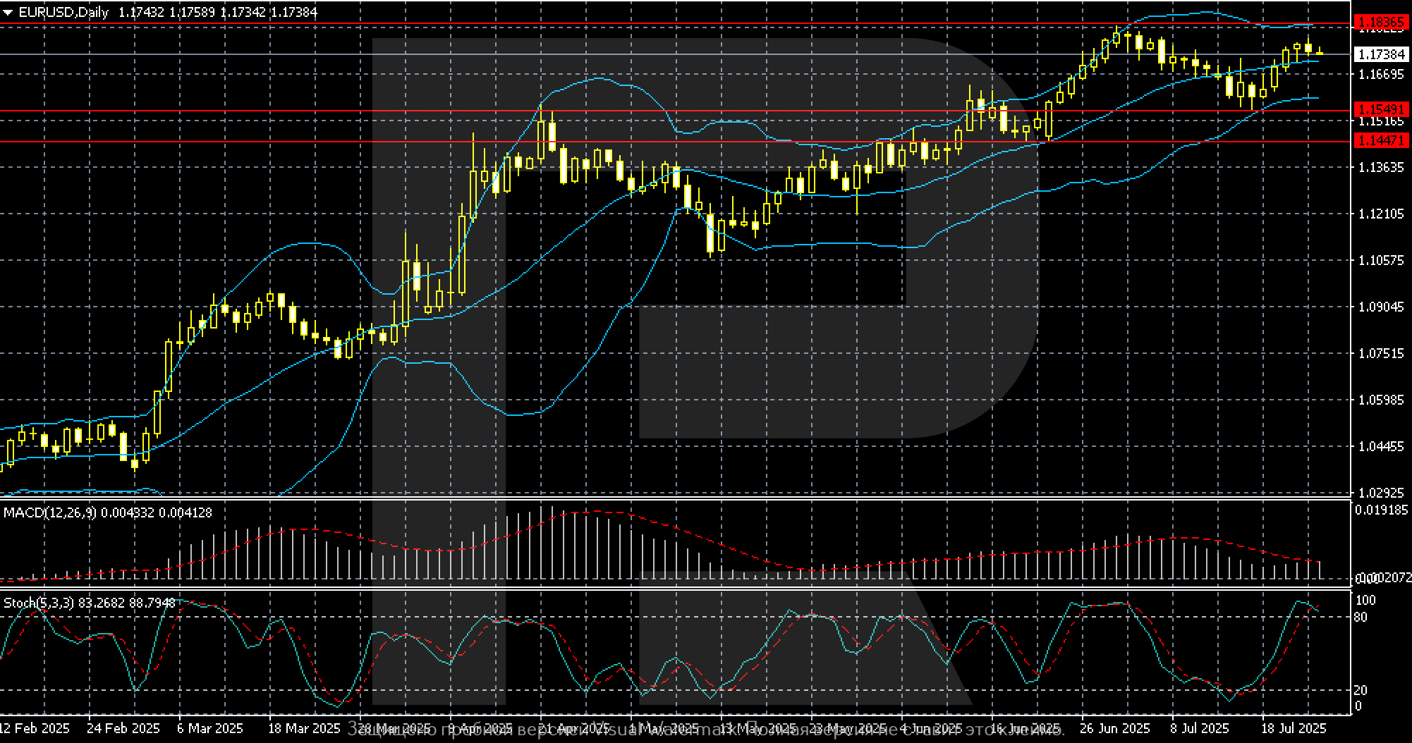Progress in US-EU trade negotiations, including a possible 15% tariff agreement on European goods, eased tensions and supported the euro. Donald Trump softened his rhetoric towards Federal Reserve Chairman Jerome Powell, stating he does not intend to dismiss him. At the same time, the market is pricing in a 43-basis-point rate cut from the Fed by the end of the year. All of this weakened the US dollar and supported interest in developed-market currencies, including the euro.