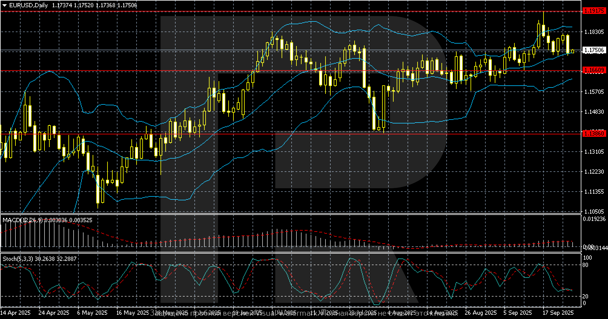 On the daily chart, the EURUSD pair went through several stages from April to September 2025. In spring, the pair declined and hit a low near 1.1390. During the summer, momentum shifted, with the euro consolidating above 1.1660 and climbing to a high near 1.1917.