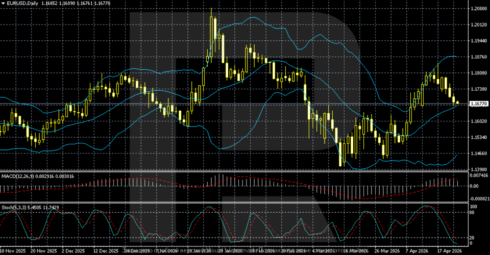 The EURUSD pair starts the week of 27 April–1 May near 1.1677 following a decline during the first correction in three weeks. The dollar strengthened due to a lack of progress in US-Iran talks and growing demand for safe-haven assets.